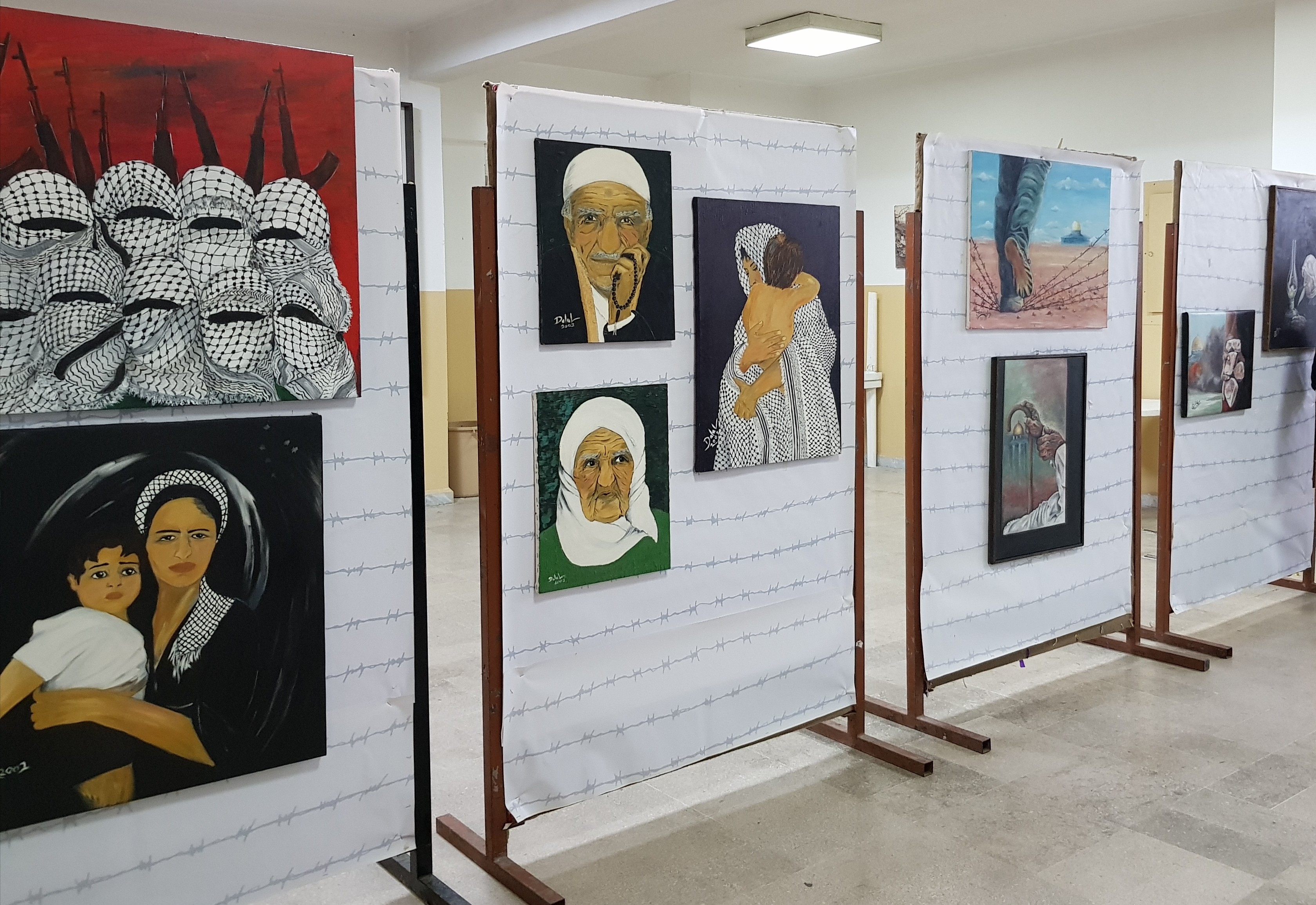 وتضمنت فعاليات الملتقى معرضا للفن التشكيلي للفنانين دلال القيسي وأسامة زيدان تضمن لوحات عن فلسطين.