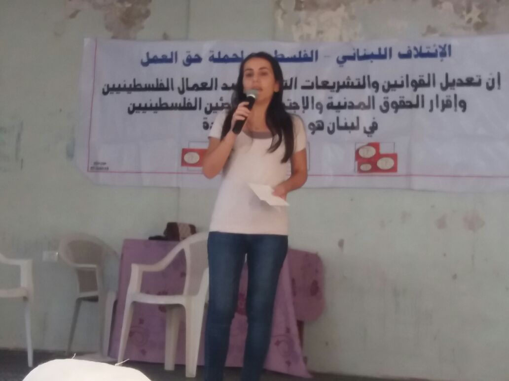 وأضافت أن اللاجىء الفلسطيني يُمنع حصريا من العمل بها مشيرة إلى أن المطالبة بحق العمل ضرورة لتحسين الواقع الإجتماعي للفلسطيني وتجنب الآفات الإجتماعية.
